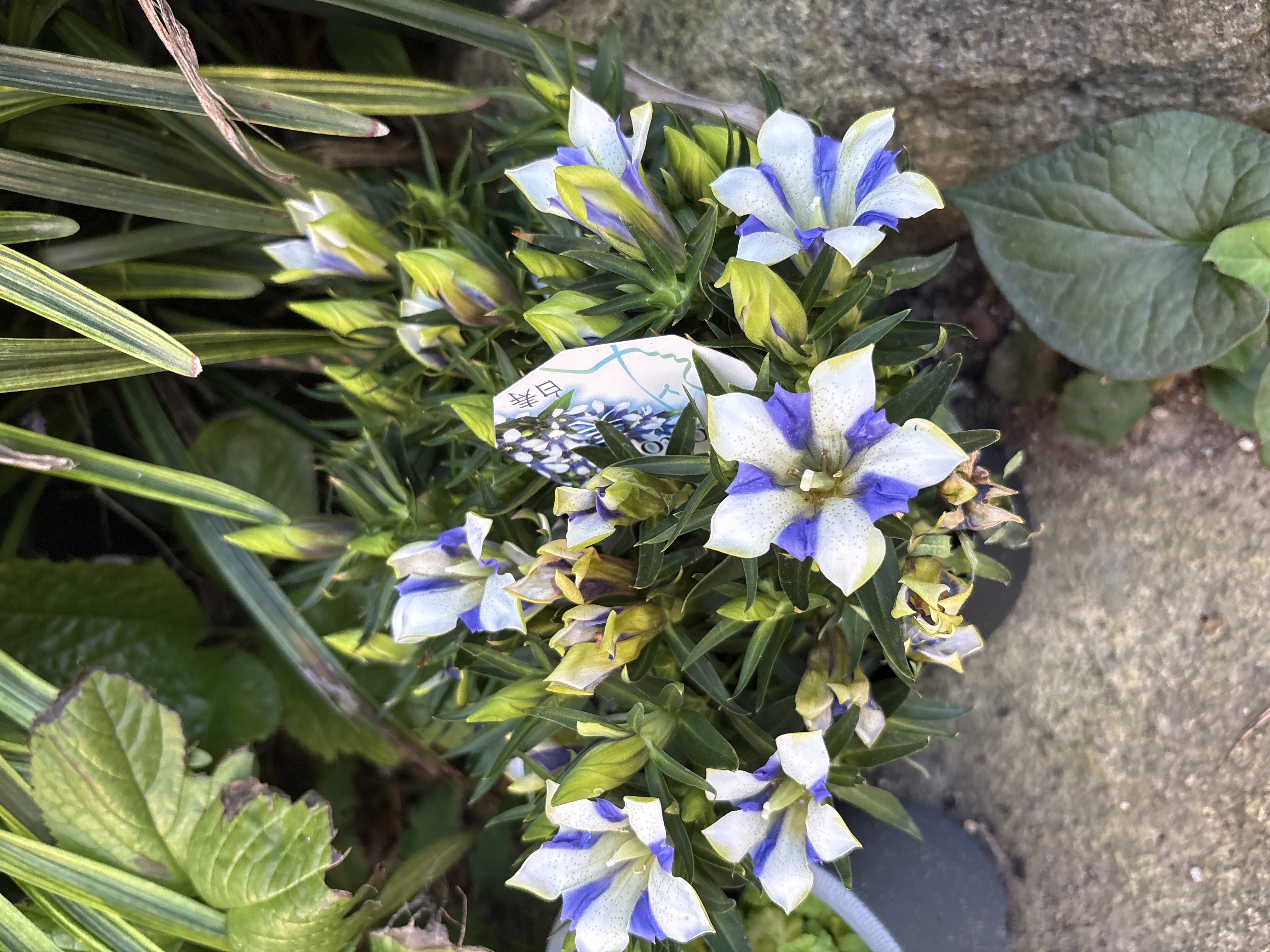 白と紫の可愛らしいリンドウが届きました。 丈も短いんですね。 玄関に近いところに置いて 出入りする時に見ています。蕾も沢山あるので 長く楽しめそうです。