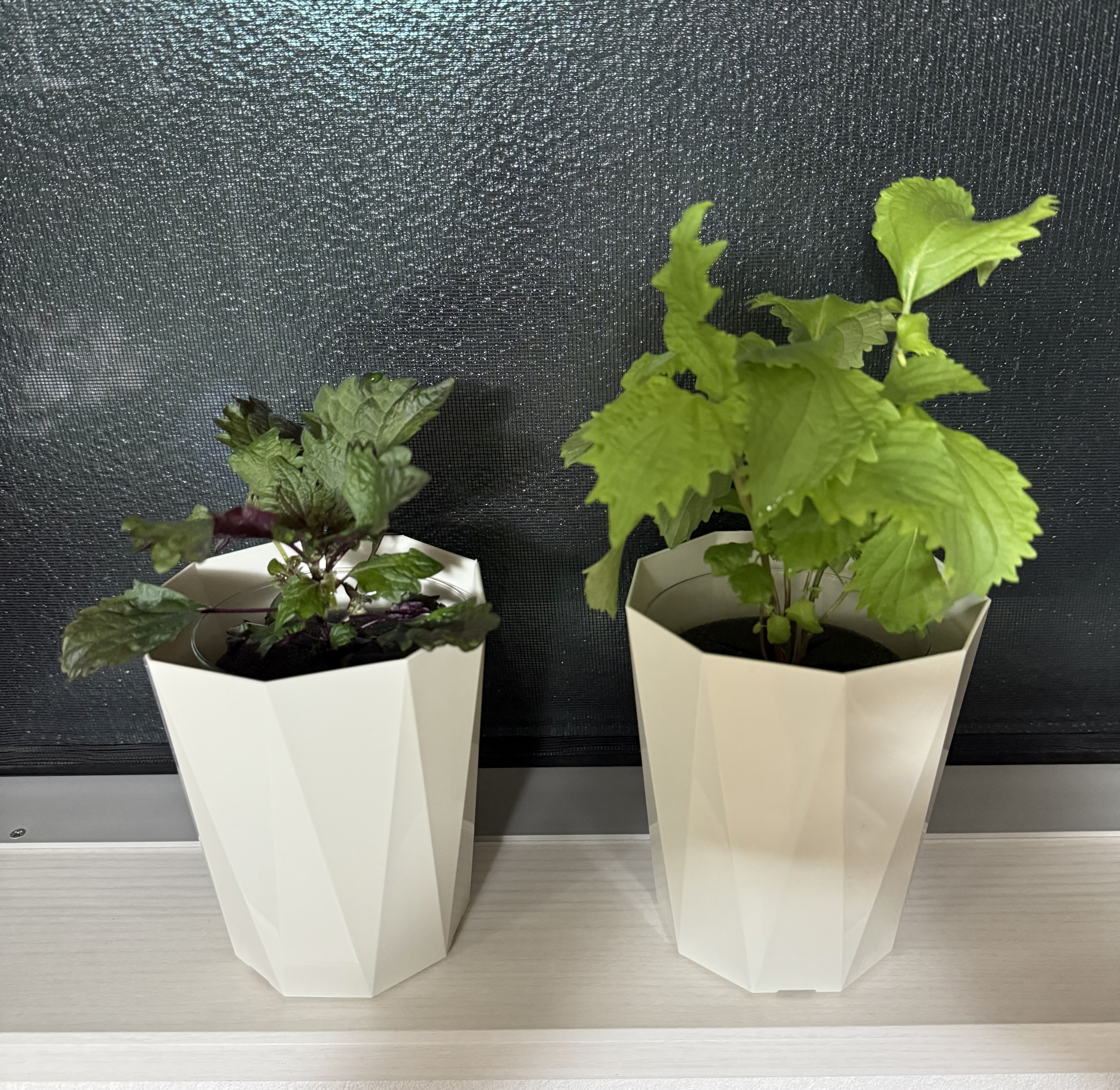 食べられるハーブのしそは、土汚れや虫の心配が少なく、キッチンやダイニングでも安心して育てられます。