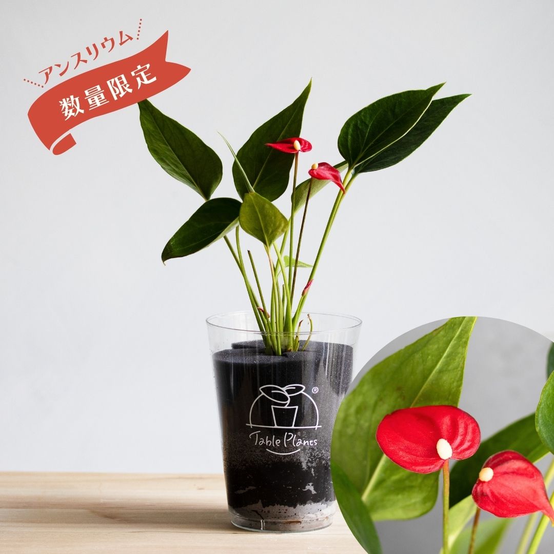 土を使わずに育てる"テーブルプランツシリーズ"のアンスリウム。