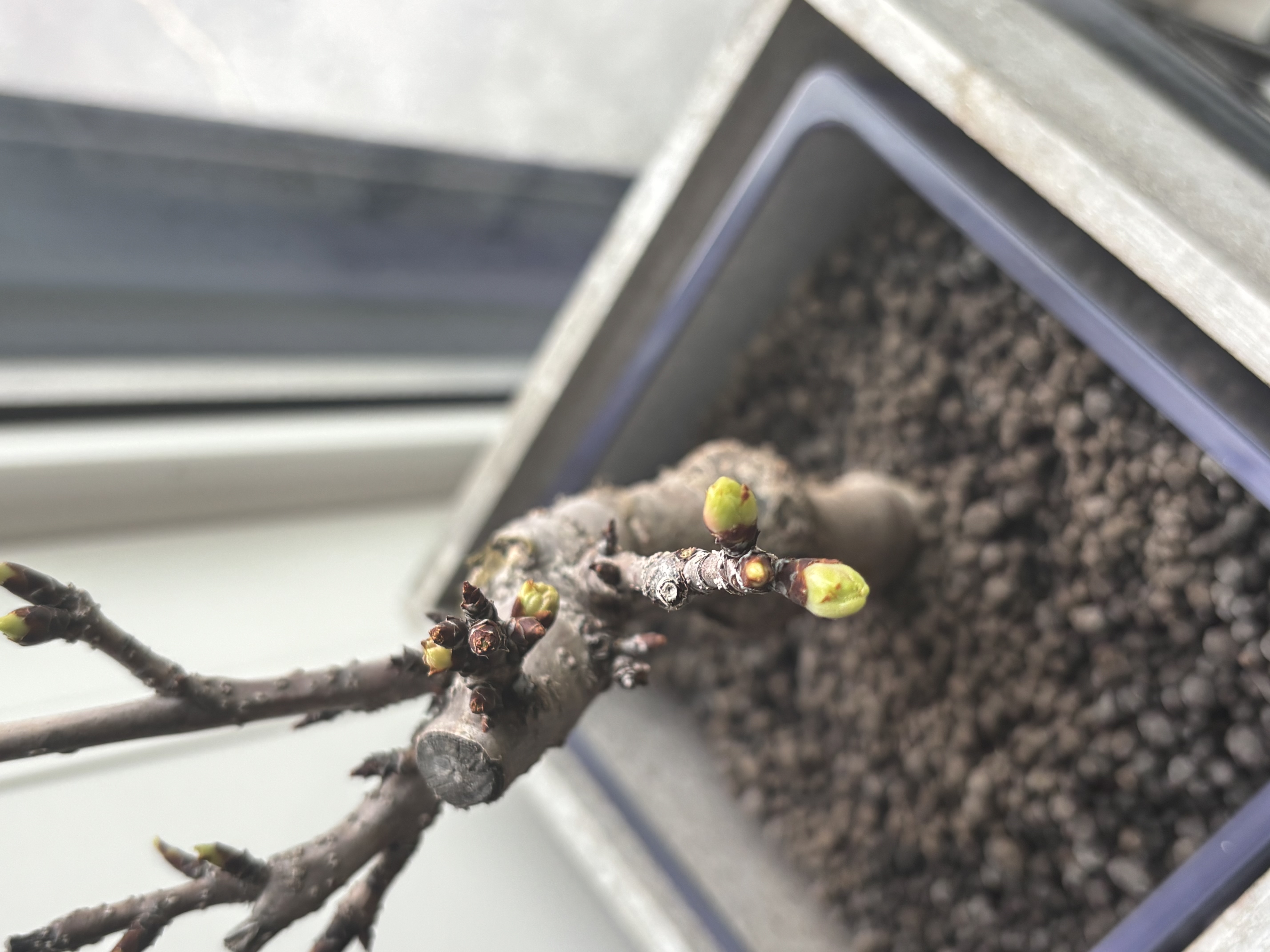 ①さくらは3月中旬〜4月下旬の間に開花いたします(栽培環境により開花時期は変わります)。開花前は寒さにしっかり当て、日中は日当りの良い場所で育てて下さい。表面の土が乾いたら水やりを行なってください。